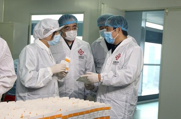 时任湖南省省长、现任湖南省委书记许达哲在抗疫早期调研圣湘生物抗疫物资生产情况