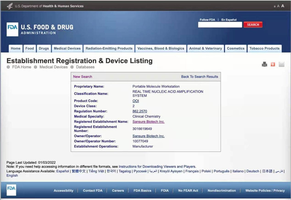 美国食品药品监督管理局(FDA)是国际医疗审核权威机构,通过FDA认证的食品、药品、化妆品和医疗器械等产品,是全球权威标准证明。好博体育官网生物四通道iPonatic核酸检测分析仪获美国FDA认证后,将有效扩大和满足全球市场各级检测防控需求,为全球疫情防控工作持续助力,推动公司全球化事业发展。