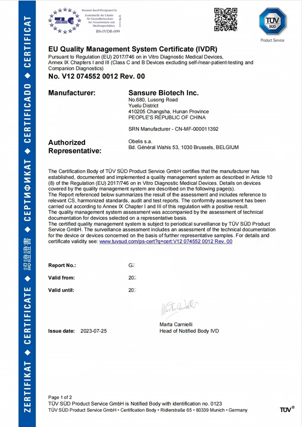 此次好博体育官网生物HPV13+2核酸检测试剂获得CE IVDR认证,是公司产品性能及国际化质量体系升级的重要成果,奠定了公司在欧盟市场的先发竞争优势,扩展了公司产品的市场覆盖范围,为进一步拓展海外客户群提供了强有力支持。