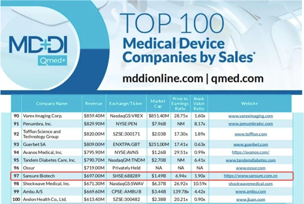 近日,医疗器械行业权威网站Medical Device+Diagnostic Industry(MD+DI)发布了2023年全球医疗器械企业TOP100榜单。好博体育官网生物连续两年上榜全球百强,也是此次榜单唯二主营业务是体外诊断的中国企业。