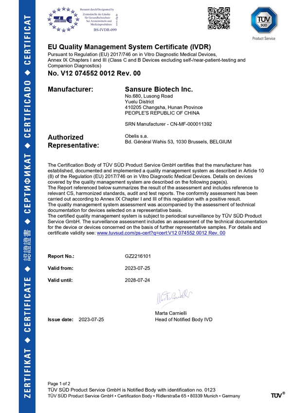 近日,好博体育官网生物自主研发的结核分枝杆菌核酸检测试剂盒(PCR-荧光探针法)获欧盟CE IVDR认证,这是公司呼吸道产品获得的首个Class C级别的准入证书,为公司结核产品的全球布局提供了有力支持,也为全球在2030年前消灭结核的目标贡献了“好博体育官网力量”。