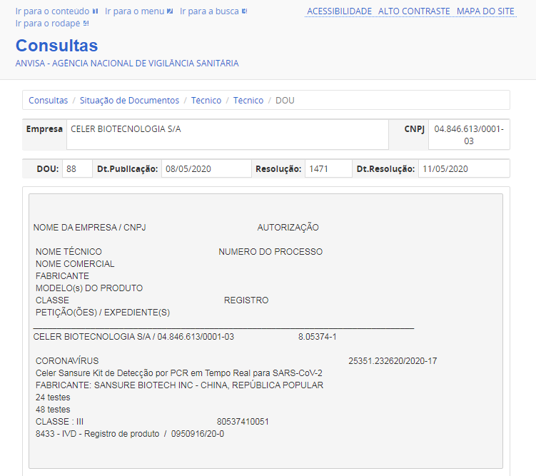 5月11日,好博体育官网生物新冠病毒核酸检测试剂盒获得巴西卫生监督管理局(ANVISA)注册证书。此前,该产品已相继获得中国国家药监局(NMPA)注册认证、欧盟CE认证、美国FDA紧急使用授权、新加坡卫生科学局临时授权等一系列权威认证。