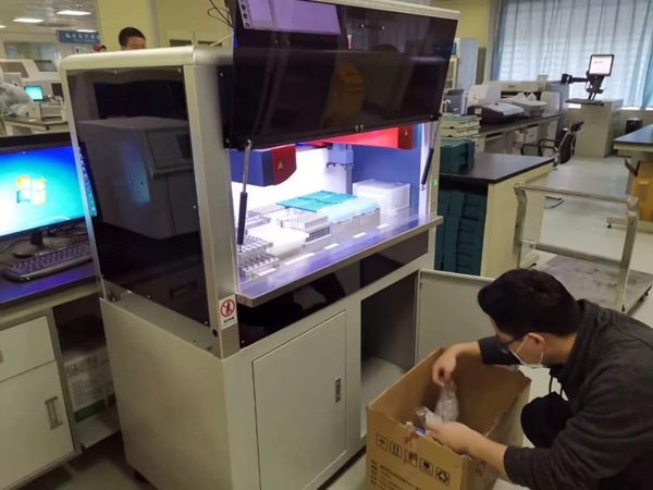 好博体育官网生物捐赠的第一批医疗设备、试剂以及配套耗材,顺利抵达武汉。与当地合作商一起,装运货物入库。